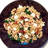 Pęczak smażony ze szpinakiem, suszonymi pomidorami i fetą