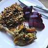 - Zdjąć przykrycie z formy, zlać tłuszcz (można go wykorzystać do smażenia ziemniaków), dodać jabłka (nacięciami do góry). Wsypać świeżą żurawinę świeżą jeśli ją mamy. Udka posmarować masłem roztopionym z miodem i piec przez 20 minut tym razem bez przykrycia. Udekorować świeżym rozmarynem i żurawiną ze słoiczka.