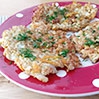 - Rozgrzać tłuszcz na patelni, nakładać po 2 łyżki masy na 1 placka, rozsmarować i smażyć przez ok. 4 minuty aż zrumieni się od spodu. Ostrożnie przełożyć łopatką na drugą stronę i powtórzyć smażenie.