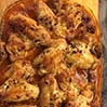 - Całość wyłożyć do podłużnego żaroodpornego garnka lub naczynia, na wierzchu położyć podsmażonego kurczaka i wstawić do piekarnika. Piec bez przykrycia przez około 45 - 50 minut. Udekorować tymiankiem lub natką.