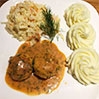 puree ziemniaczane (np. odsmażane na patelni) / surówka z kiszonej kapusty / kiszone ogórki