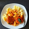 - Wilgotnymi dłońmi formować małe kulki, potem obtoczyć je w skrobi ziemniaczanej i na koniec krótko obsmażyć na oliwie.