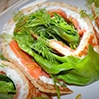 - Zawinąć w rulonik, pokroić ukośnie na ok. 3 cm kawałki, ułożyć na półmisku. Dodać cząstki cytryny do skropienia, udekorować koperkiem.