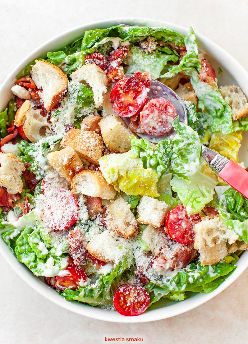 kwestiasmaku Sałatka Cezar z boczkiem i pomidorkami koktajlowymi