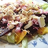 - Wymieszać składniki sosu, doprawić solą i świeżo zmielonym pieprzem, polać do sałatce. Posypać zrumienionymi na suchej patelni płatkami migdałów.