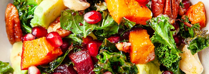 Sałatka z pieczonych buraków, batatów i jarmużu