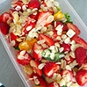 - Truskawki umyć, osuszyć, oderwać szypułki, pokroić na połówki. Mango obrać i pokroić w kostkę.
