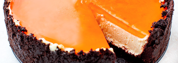 Kremowy sernik na zimno z galaretką Aperol spritz, na spodzie z ciastek oreo
