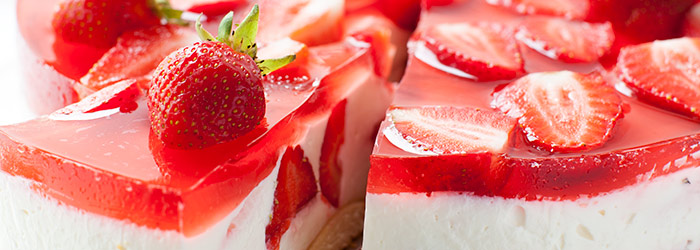 - Wyjąć sernik z lodówki i powciskać w niego resztę truskawek pokrojonych na połówki. Łyżką wylewać galaretkę i wstawić do lodówki do całkowitego stężenia.