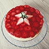 - Mrożone truskawki odrobinę rozmrozić, na tyle aby było je łatwo pokroić na plasterki. Ułożyć na wierzchu przestudzonego sernika. Polać tężejącą galaretkę i całość schłodzić.