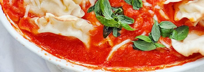 Inspiracją do przygotowania pierożków było klasyczne połączenie mozzarelli i pomidorów znane np. z sałatki Caprese. Powstało pyszne kremowe nadzienie serowe z mozzarellą, z dodatkiem ricotty i mascarpone, z którym idealnie skomponował się domowej produkcji sos ze świeżych pomidorów. Danie po prostu przerosło nasze oczekiwania smakowe :-)