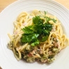 Dzisiaj pomysł na szybki i pyszny sezonowy obiad! To dobrze Wam znana carbonara, tylko z dodatkiem młodego bobu. Zazwyczaj sos do carbonary robię z całych jajek, dzisiaj użyłam samych żółtek z dodatkiem śmietanki. Co prawda oryginalna carbonara jej nie zawiera, ale ze względu na dodatek bobu możemy odejść od tej zasady aby pysznego sosu było nieco więcej ;-) Z reszty składników potrzebne Wam będą: spaghetti, boczek, natka pietruszki i parmezan. Polecam do wypróbowania!