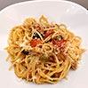 Włoski makaron z sosem, w skład którego wchodzą pomidory, oliwa, czosnek, anchois, kapary i czarne oliwki.