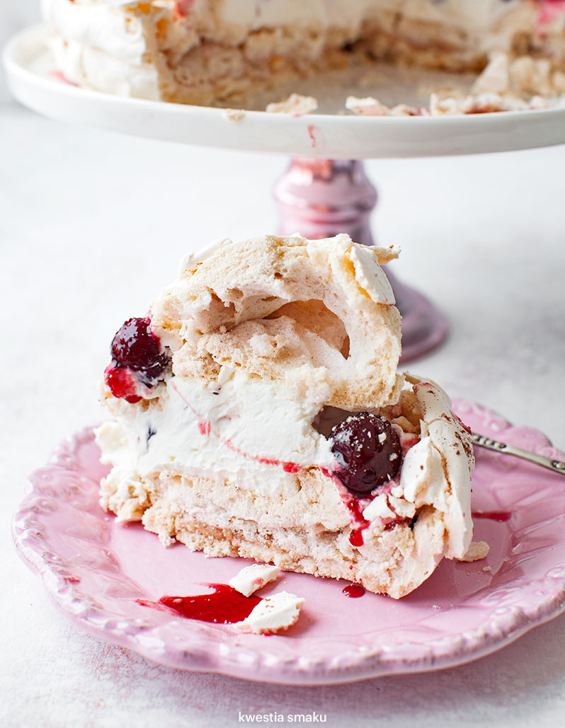 kwestiasmaku Tort bezowy z kremem i wiśniami