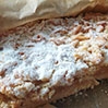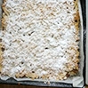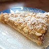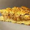 - Pozostałe ciasto zetrzeć na tarce bezpośrednio na jabłka (lub pokroić ciasto na plasterki i ułożyć na wierzchu).