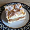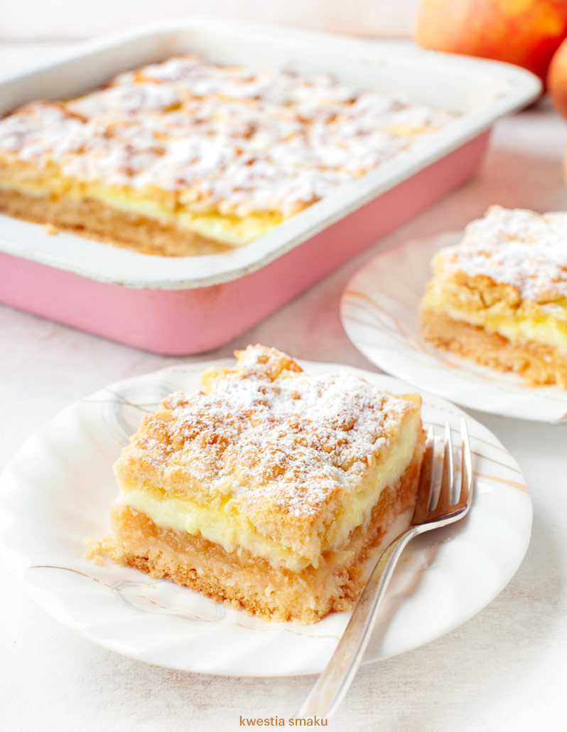 Błyskawicznie się ją robi i znika z blaszki za jednym podejściem. Odczekajcie trochę po upieczeniu ciasta, aż się ostudzi, wówczas będzie się ładnie kroić. Koniecznie używajcie jabłek odmiany reneta, bo są zwarte i nie mają soków, które mogą namoczyć ciasto. Renety są bez problemu do kupienia na każdym bazarku. Można użyć jabłek ze słoika, ok. 1/2 l.