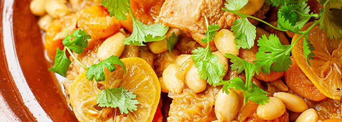 Aromatyczny gulasz wywodzący się z krajów północnej Afryki, z dodatkiem szafranu i kiszonej cytryny, podawany z kuskusem.