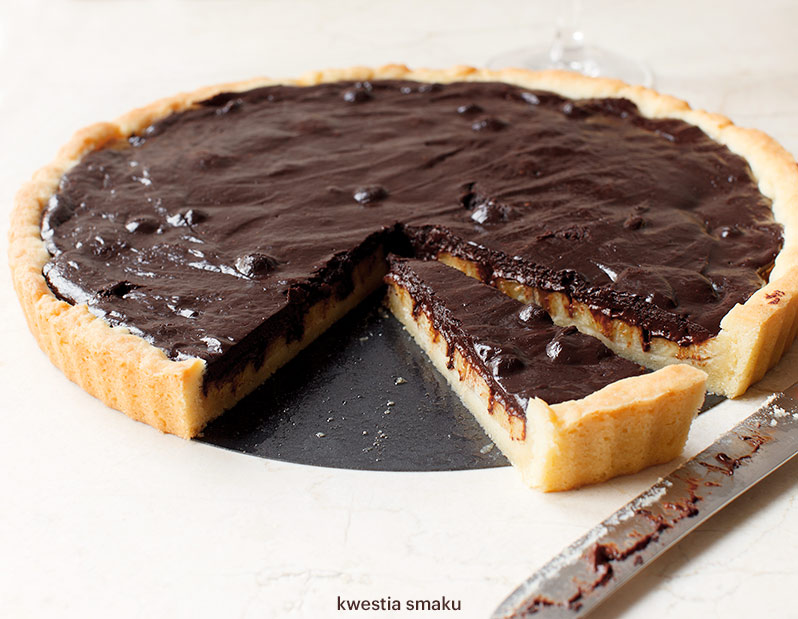 Pyszna, delikatna i bardzo łatwa do zrobienia tarta na kruchym spodzie zapiekana z bananami i ganache czekoladowym.