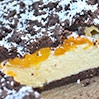 - Masę serową wyłożyć na upieczony spód, ułożyć cząstki brzoskwiń i posypać resztą ciasta startą na tarce i uformowaną w palcach na kruszonkę. Wstawić do piekarnika i piec przez 20 minut. Wyjąć z piekarnika i pokroić.