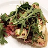 Podawana z zielonym pesto i rukolą.