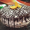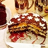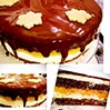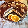 - Polać polewą czekoladową (roztopić połamaną na kosteczki czekoladę razem z olejem i masłem). Udekorować gwiazdkami z marcepanu i świeżą pomarańczą. Przechowywać w lodówce.