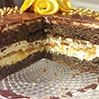 - Pierwszy blat makowy położyć na paterze, wyłożyć 1/3 kremu, następnie pomarańcze i znów 1/3 kremu. Położyć drugi blat makowy, wierzch i boki pokryć kremem. Wstawić do lodówki.