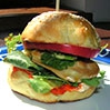 - W wersji dodatków nr 1 na spodzie bułki ułożyć liście sałaty, plaster ananasa, halloumi i czerwoną cebulę.