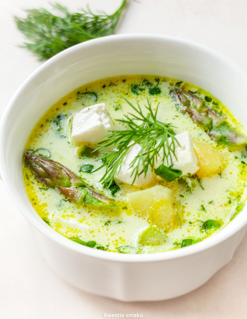kwestiasmaku Zupa szparagowa z ziemniakami i fetą