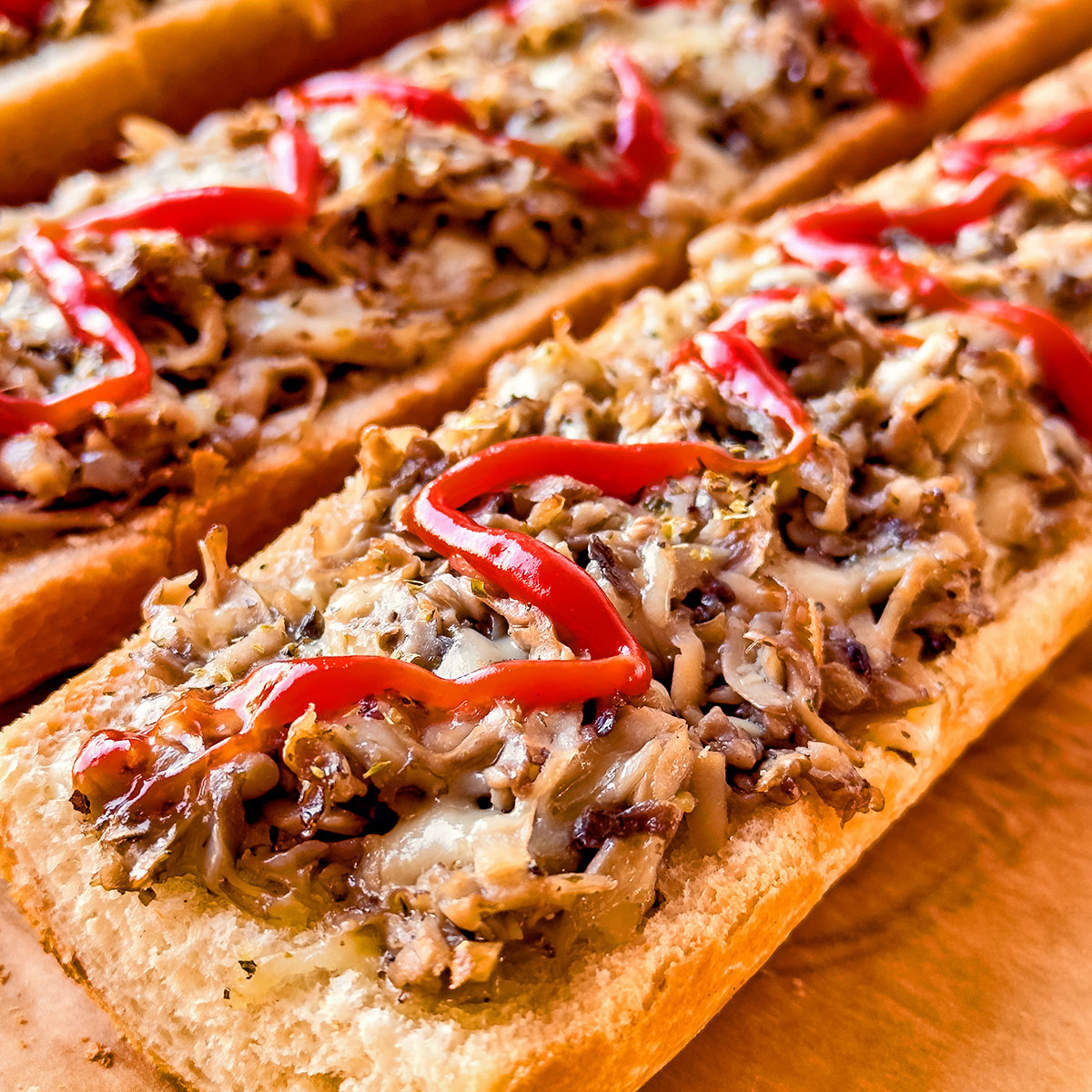 Zapiekankom zawsze mówimy TAK! Na lekkich i puszystych bagietkach, z farszem pieczarkowo-serowym z cebulką, czosnkiem i oregano. Oraz oczywiście z ketchupem.