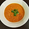 Pyszna zupa z czerwonej soczewicy z pomidorami, doprawiona kurkumą, curry i czosnkiem.