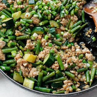 Kaszotto z kaszy gryczanej z kalafiorem, szpinakiem i mielonym mięsem