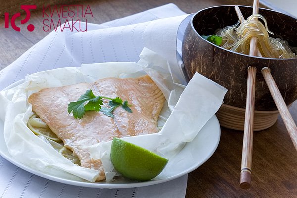 admin Łosoś w papilotach z makaronem ryżowym