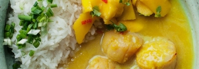 Orientalna zupa z łososiem, brokułami i grillowanymi pieczarkami
