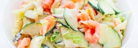 Cukinia zapiekana z krewetkami, pomidorami i chili