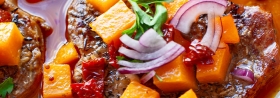 Steki z karkówki pieczone z dynią i suszonymi pomidorami