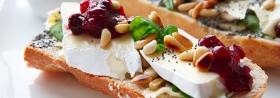 Bagietka z serem brie, żurawiną i orzeszkami pinii