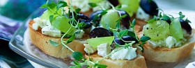 Grzanki z kozim serkiem, winogronami i tymiankiem