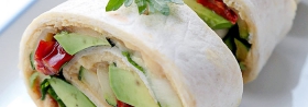 Roladki z tortilli z grillowaną cukinią, awokado i hummusem