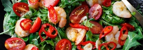 Sałatka z krewetkami smażonymi z czosnkiem i papryczką chili