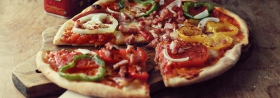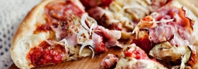 z salami, boczkiem, pomidorami, cebulą i papryką