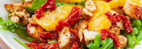 Sałatka z kurczakiem, pomarańczą i suszonymi pomidorami