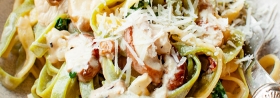 Makaron z grzybami leśnymi, kurczakiem i szpinakiem