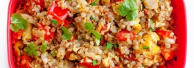 Kasza gryczana smażona z jajkiem, kapustą pekińską i papryką