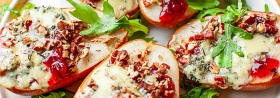 Pieczone gruszki z serem pleśniowym, żurawiną i orzechami