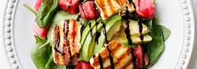 Sałatka z arbuzem, awokado i grillowanym serem halloumi