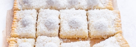 Mazurek migdałowo-kokosowy z białą czekoladą i pralinkami Raffaello
