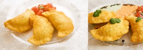 Meksykańskie pierożki "empanadas" smażone na głębokim tłuszczu z nadzieniem mięsnym lub serowym.