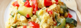 Makaron zapiekany z kurczakiem, cukinią, papryką i porem