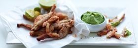 Młode ziemniaki z rzodkiewką, dymką i sosem chrzanowym