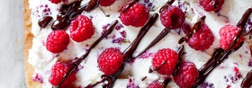 Kakaowe ciasto kruche z czarną porzeczką, kremem mascarpone i bezą